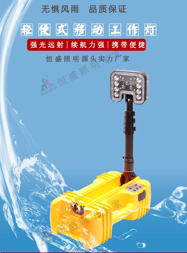 在開發(fā)第一代輕便式移動工作燈,恒盛照明企業(yè)研發(fā)人員綜合了用戶使用體驗(yàn),在燈頭部分植入手提提手,不僅可以手提,也可以用于懸掛,給移動及使用時帶來更大的便利。