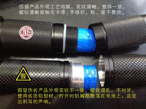 恒盛牌JW7623|JW7620佩戴式強(qiáng)光照明燈選用A級(jí)電芯,并加有過充過放保護(hù)裝置。假冒偽劣JW7620佩戴式強(qiáng)光照明燈| JW7623多功能強(qiáng)光巡檢工作燈選用廢棄電池,并沒有任何防護(hù)功能,有安全隱患。