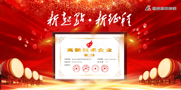 2017年11月13日,溫州市恒盛照明電器有限公司收到由浙江省科學技術(shù)廳,浙江省財政廳,浙江省國家稅務局,浙江省地方稅務局四部門聯(lián)合頒發(fā)的 《高新技術(shù)企業(yè)證書》。這對于恒盛照明來說,是繼LED固定照明產(chǎn)品通過中國質(zhì)量認證中心的產(chǎn)品強制認證即3C認證后的又一大喜事,為恒盛照明2018年的良好發(fā)展開了一個好彩頭。