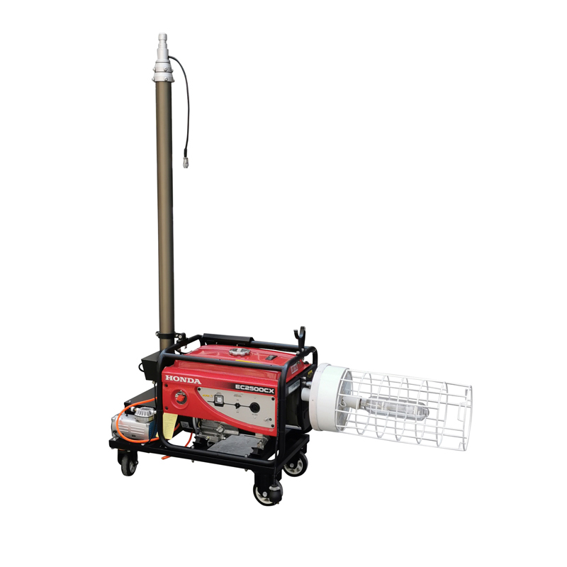 3.燈盤、氣缸和發(fā)電機(jī)組為整體結(jié)構(gòu),發(fā)電機(jī)組底盤裝有帶剎車裝置的萬(wàn)向輪,可在坑洼不平的路面正常使用。