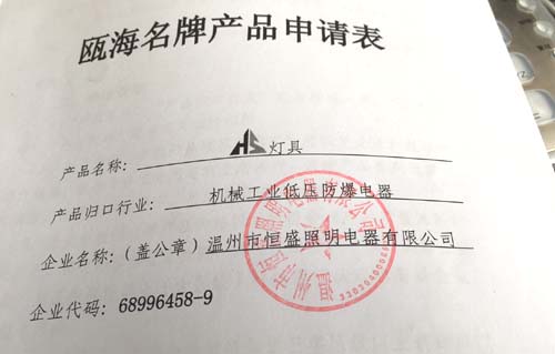 繼獲得開(kāi)發(fā)區(qū)“先進(jìn)企業(yè)”,“區(qū)專(zhuān)利示范企業(yè)”,“市科技創(chuàng)新企業(yè)”,“省科技創(chuàng)新企業(yè)”,經(jīng)各級(jí)單位層層推選,確認(rèn)恒盛照明企業(yè)產(chǎn)品將申請(qǐng)“甌海名牌產(chǎn)品”。
